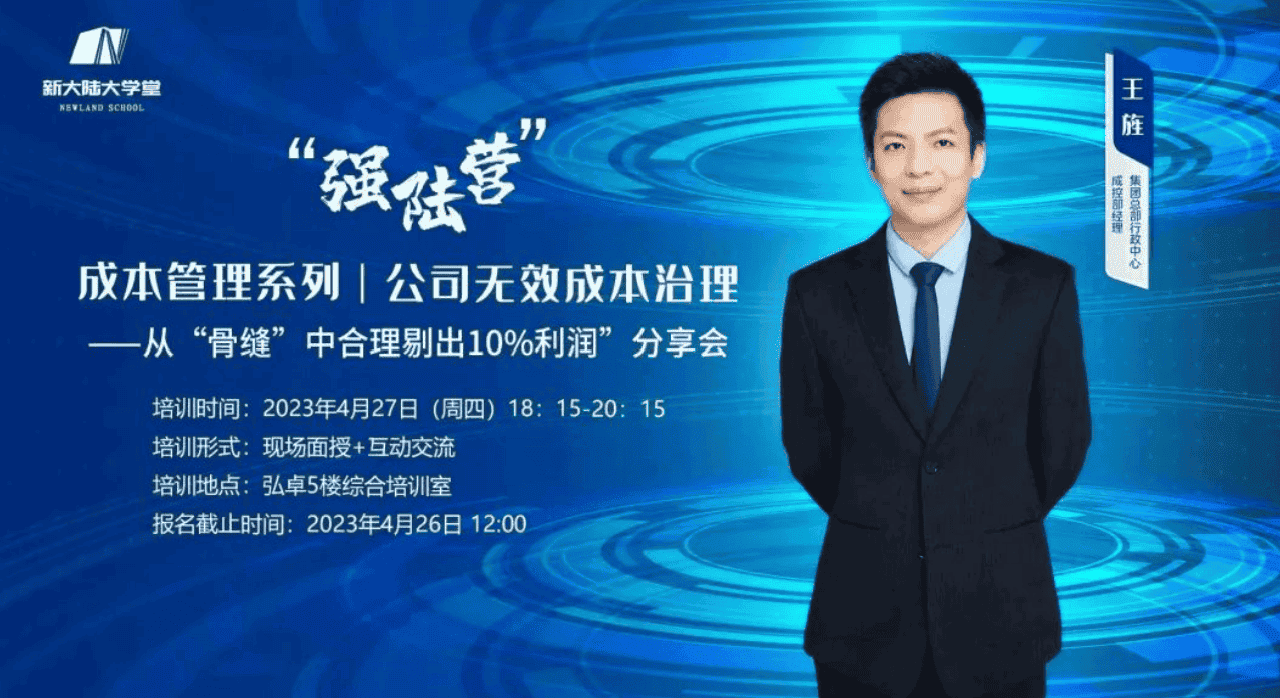 为了加强公司成本管理,提高员工成本管理意识,完善公司成本管理体系建设,4月27日,集团人力资源部特邀集团总部行政中心成控专家王旌带来球速体育强陆营《成本管理系列“公司无效成本治理——从‘骨缝’中合理剔出10%利润”》分享会。来自总部职能平台及各经营单位共48位成本管理相关人员参加。