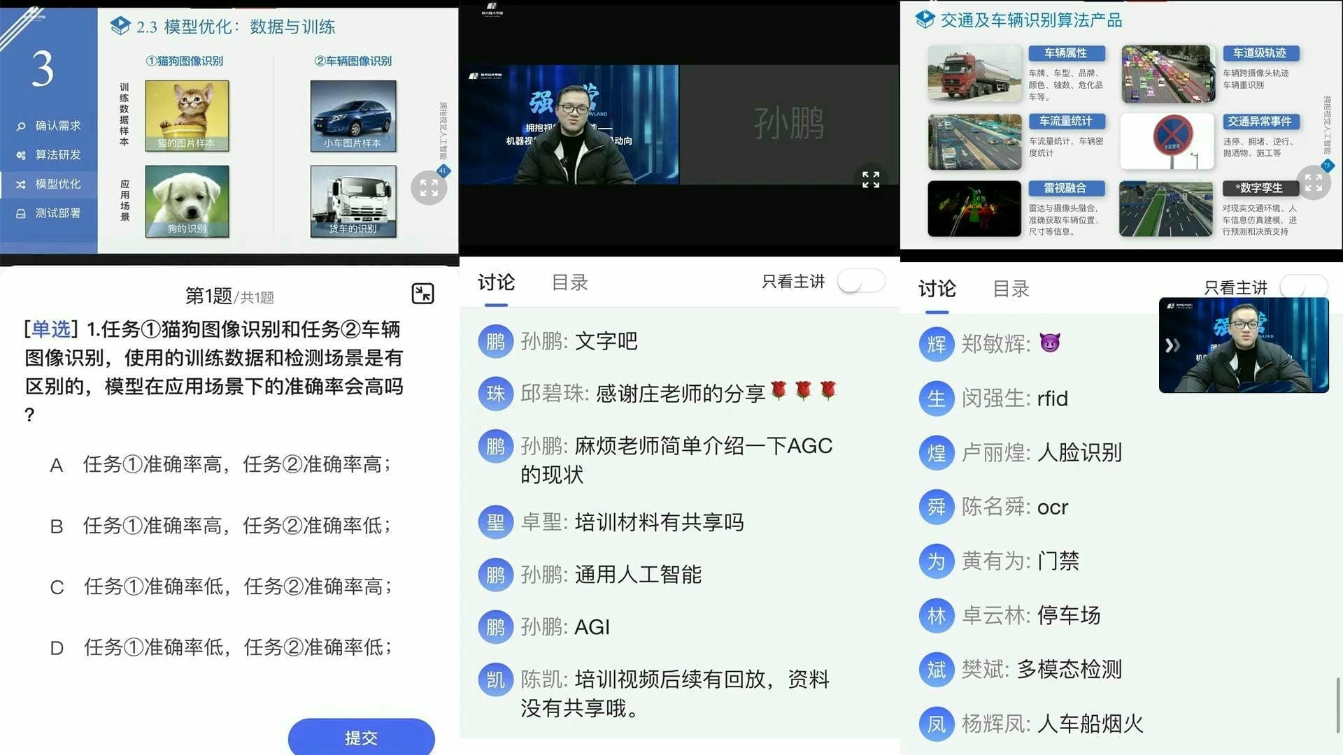 在交流互动环节,与会人员踊跃发言,和讲师共同探讨通用人工智能的发展现状以及对它的展望。通过本次分享会,学员们不仅掌握了机器视觉技术的基本知识和技能,也增强了与市场、产品等部门的协同作战能力。