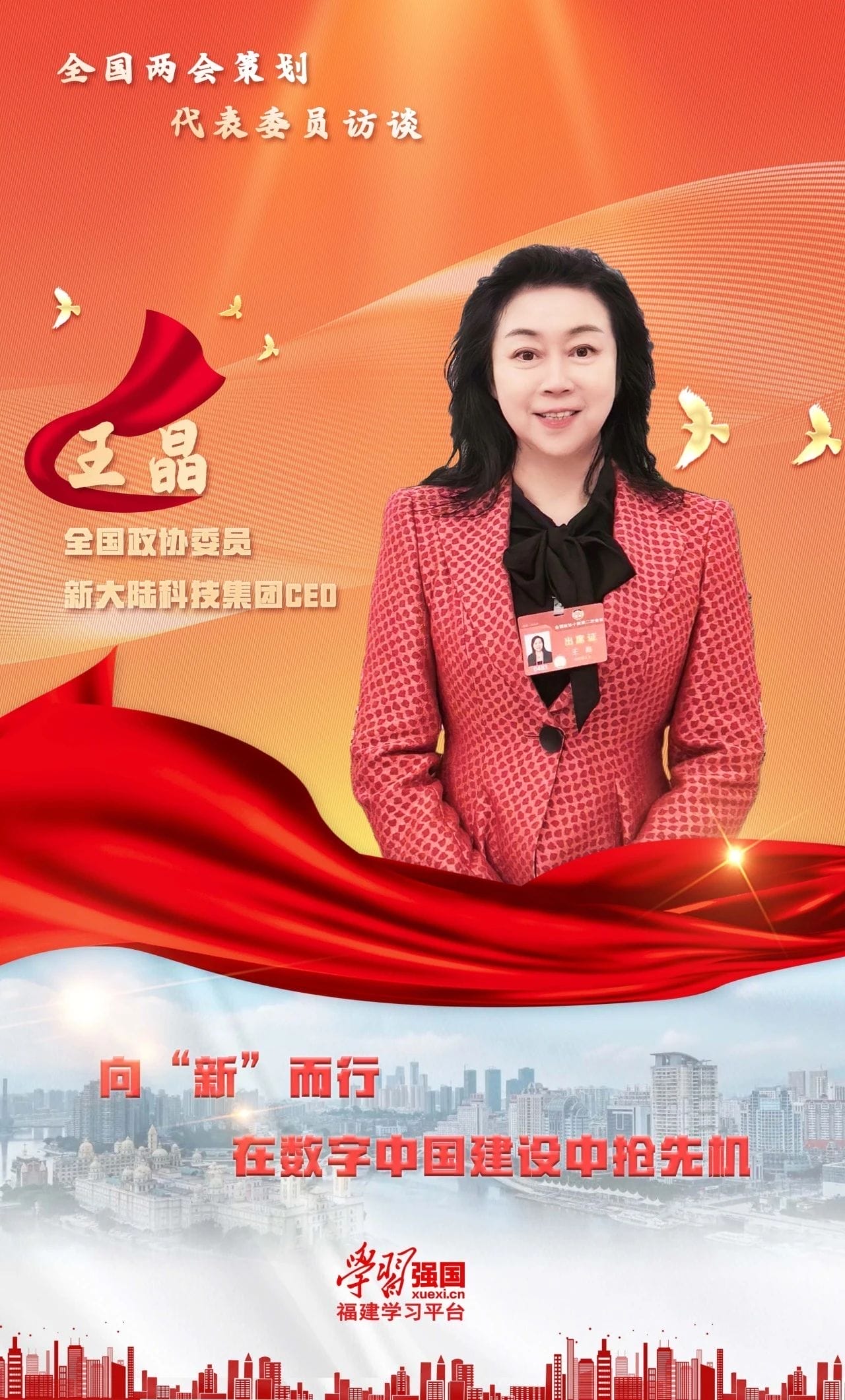 作为数字中国策源地和民营经济发轫地之一的福建,民营企业如何加快推进新技术在各行各业的应用和赋能,如何以新质生产力为新引擎推动经济高质量发展?时值全国政协十四届二次会议,“学习强国”福建学习平台记者专访了全国政协委员、球速体育科技集团CEO王晶。