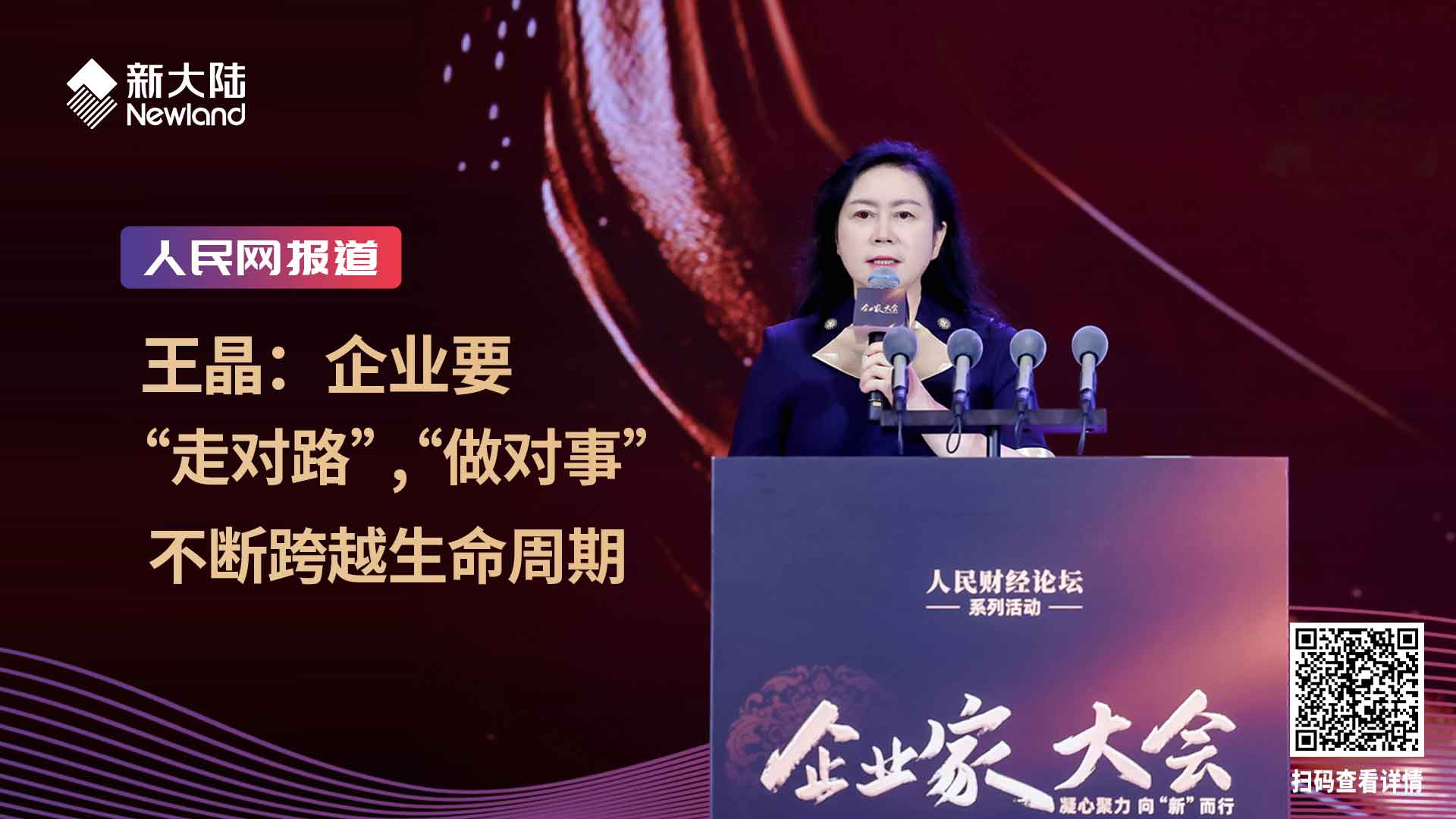 王晶表示,在新时代,企业家要做到和国家同频共振,要去做符合时代趋势和需求的事,做有人类情怀、天下情怀、家国情怀的企业家。