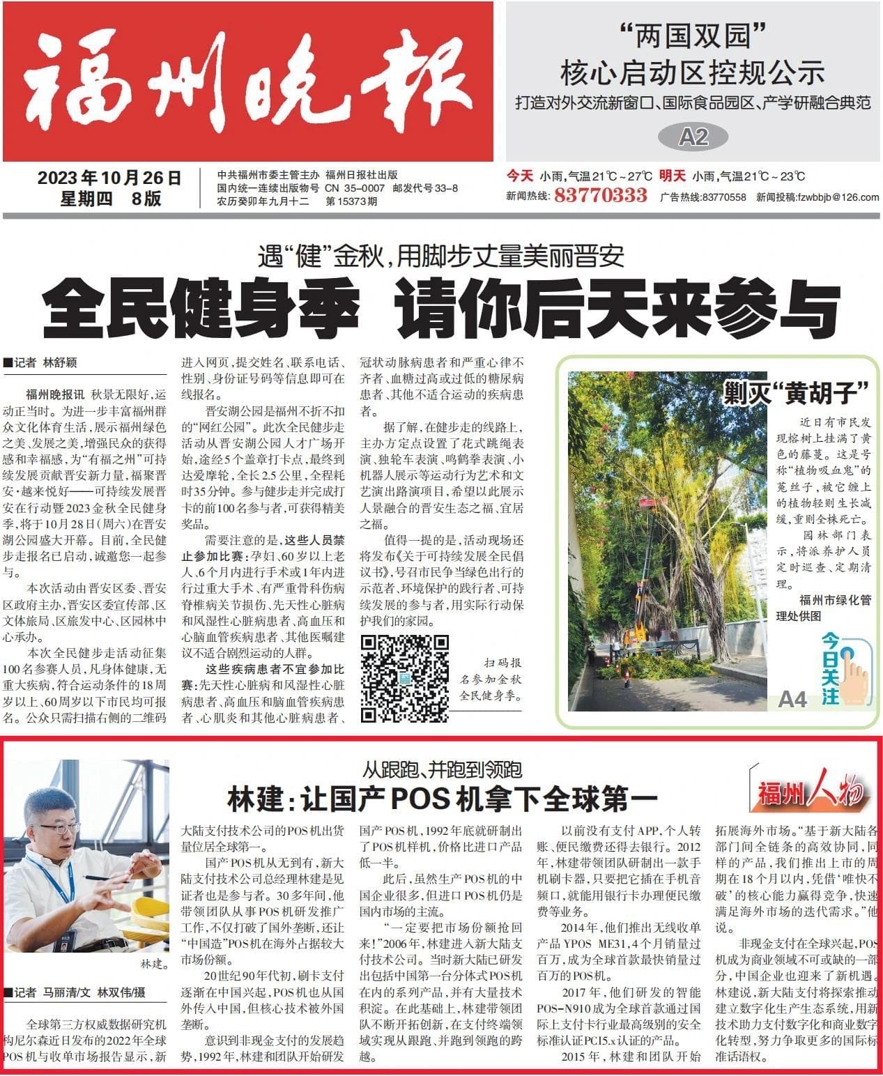 10月26日,福州晚报“福州人物”栏目刊发专题报道《林建:让国产POS机拿下全球第一》。集团官微今日全文转发,以飨读者。