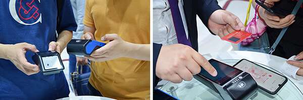 在数研所展区,NPT工作人员借助两款数字人民币受理终端——手持智能终端N910和台式扫码终端ME50C,向现场观众演示了数字人民币软硬钱包的扫码、非接和碰一碰支付,并对数字人民币的交易实现过程做了详细讲解,吸引了福建广电、中证网、凤凰网等多家媒体的关注和报道。